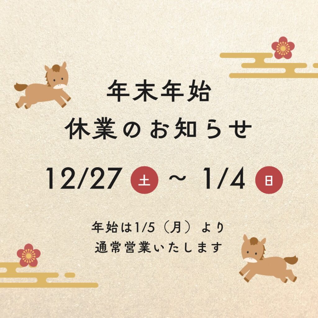 冬季休業期間 2025年12月27日(土)~2026年1月4日(日) 2026年1月5日(月)より通常営業を開始いたします。