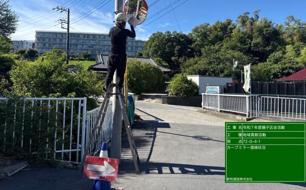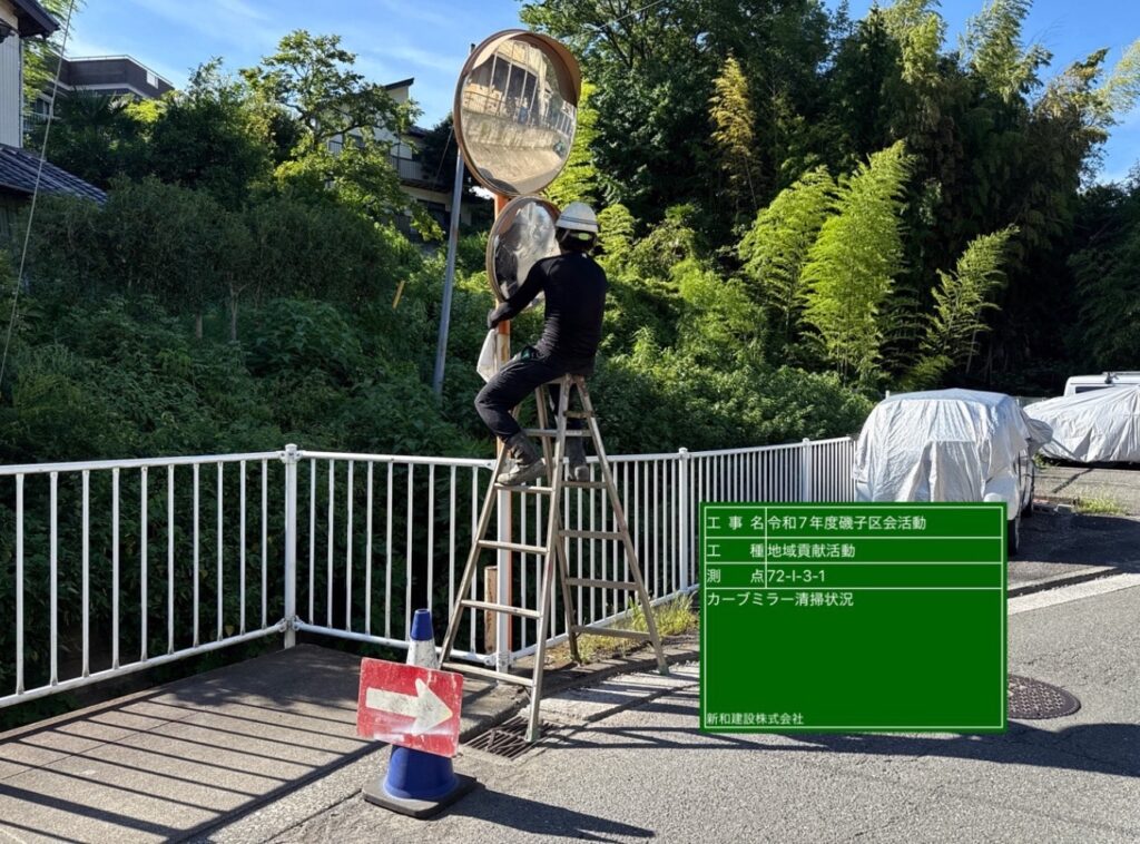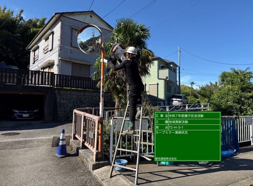 区会で配布された洗剤で、まずはミラーを綺麗に洗っています。